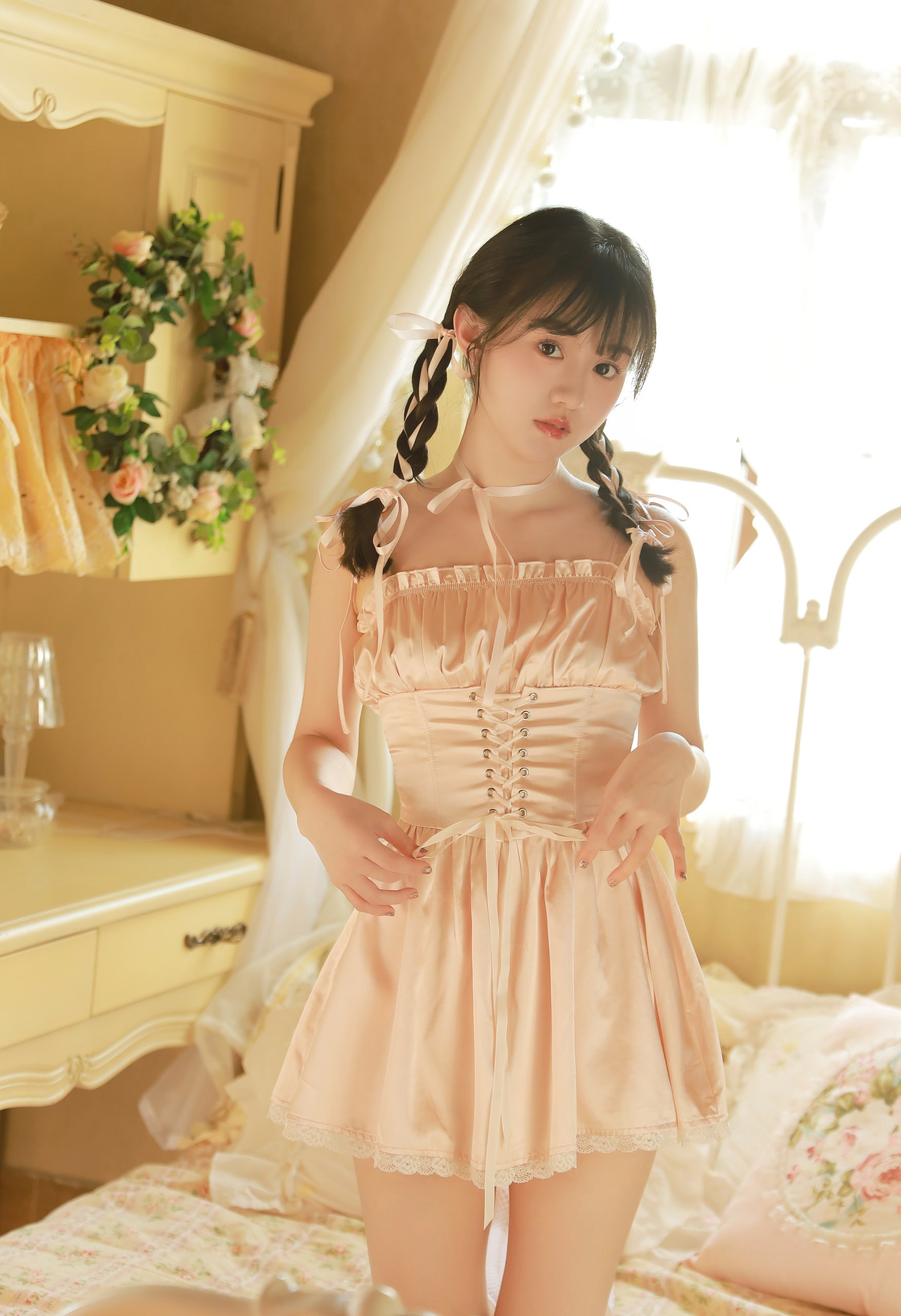 初丽蕾穿的是短裙和白色细肩带的背心,这对表现少女的体态优美是十分好的,但是对于保护少女的贞操却是一点用都没有!男人连脱带扯很快将她的白色吊带衫和短裙都脱了下来,她身上只剩下了乳罩和内裤。只剩下乳罩和内裤的肉体丰满而均称。让男人不由地赞叹。乳罩似乎还不能完全掩盖丰乳,露出一条很深的乳沟。内裤竟是如此窄小,前面的小布条仅仅掩住她隆起的的大阴唇,黑色的阴毛绝大部分都在外面。下阴在她透明状的内裤下的朦胧样子,有一条细细的红色肉缝,暗红的大阴唇上还有许多一丛丛的阴毛。有刺绣的白色三角裤紧紧的包围着有重量感,形状美好的屁股。在没有一点斑痕的下腹中心有可爱的肚挤,如缩紧的小嘴。她丰美的躯体发出迷人的光泽,修长的大腿洁白而光滑,像象牙一般。男人一边亲吻着她的脖子,左手隔着胸罩很用力的揉搓她的双奶,右手隔着裤子在她的阴蒂按着。啊嗯啊啊嗯她发出呻吟。然后男人又把手伸进胸罩里,按捏她的乳房和乳头。男人也许是被初丽蕾的呻吟点燃了欲火,粗暴地撕去了她的乳罩,她那雪山般洁白的乳峰蹦了出来,粉红色的乳头微微向上挺起。男人冲动地又极粗鲁地摸揉着这一大自然的杰作,接着又乘势剥下了她的内裤,处女圣洁的下体暴露无遗。白色的三角裤离开丰满的屁股。立刻出现上翘的浑圆臀丘和很深的股沟。在光滑的下腹部,有一片黑色的草丛,呈倒三角形。那种样子让人连想到春天的嫩草。男人拿出一架数码相机疯狂地拍着初丽蕾的裸照,失去了知觉的初丽蕾被男人摆弄着作出各种淫荡的POSE现在初丽蕾全身赤裸,人字型躺卧在床上,看着她那一对已经破衫而出的双峰,确实挺拔非凡而且无视地心吸力,依然坚挺,雪白的长腿曲线玲珑,凹凸有致,两条腿向外分,看起来她很注重她的脚趾,不但洗得干干净净,趾甲也修得圆圆的,还涂上一层带有银粉的透明趾甲油,微红的趾尖,衬托着几根青筋细浮的脚背,显得格外地粉白娇嫩。男人一手托着她的脚,把她那一双白色高跟凉鞋脱下,开始用嘴来吸吮那一根根修长嫩滑的脚趾头,另一手也没闲着,分别用大姆指跟食指夹住初丽蕾右边的乳头慢慢揉搓,原本小巧可人的乳头,慢慢勃起,变得好硬丶好大,此时男人改成搓弄她左边的乳头。在仔细的吸吮完每一根脚趾之后,男人的双手用力地按揉她的乳房,在乳头上打圈,她原来雪白的乳房已发出了阵阵红晕,更丰满高耸了,粉红色的乳头也更挺拔了。这时男人改为含着初丽蕾的乳头,不停吸啜,间中以牙齿咬扯,或以舌尖挑逗,并空出一只手来,把手伸到她的下身,中指贴着阴唇不停地磨擦,其他手指也不停地玩弄着初丽蕾的阴毛丶阴唇,中指慢慢插进了初丽蕾的阴道,小心地抠弄着肉壁,生怕戳破了处女膜。呃嗯呃嗯初丽蕾发出一阵阵快感的呻吟,再看她的阴道口处涌出一股股爱液,弄湿了白嫩臀部下的一大片床单。这时男人双手绕过她的双腿分开初丽蕾贞洁的花瓣,如鲜花绽放的阴户展现在镜头前,柔软红嫩的小阴唇紧紧地护住她的阴道口,小阴唇的顶部是红润如黄豆大小的阴蒂,在爱液的滋润下,小阴唇和阴蒂闪闪地泛着莹光。整个阴户湿漉漉的,分开柔软的小阴唇,可以清晰地看到小小的尿道口和略大一些的阴道口,阴道口还有涓涓的爱液,男人用双唇含着初丽蕾的阴蒂,略为用力地啜了一下。啊初丽蕾轻轻的呻吟一声,阴道口处一下涌出一股淡白浓稠的爱液。这时男人拿出媚药DC-5,涂在初丽蕾的阴唇上,不消一会,强劲的药效令毫无知觉的初丽蕾媚态毕露,阴道口更是流出了大量爱液。男人一边吸啜她的爱液一边用双手不停揉搓她的双峰。哈哈男人边淫笑着边脱下衣服,露出快要爆炸的阴茎。男人把初丽蕾的双腿架在他的腰上,黑色阴毛包围着鲜艳的粉红色洞口,洞口好像张开嘴等待男人巨大的肉棒,阳具在她的两片大阴唇间,上下滑动,摩擦她的阴蒂丶阴唇丶阴道口,俯下身亲吻初丽蕾的樱唇,把舌头伸进初丽蕾口中搅拌湿滑的舌头,一双手毫不怜惜的揉捏她的柔嫩乳房,接着再吻上她的乳房,舌头在双乳上画圈圈,突然一口含住她的乳房开始吸吮。男人直起腰,把涨得通红的肉棒在已经湿得一塌煳涂的阴户处,分开大阴唇对准初丽蕾的阴道,正式开垦她这未经人道的桃源胜地,不想一下就插到底,男人要一点一点的享受插入玉女初丽蕾这处女穴的美妙的感觉,肉棒慢慢地插入。男人双手捧住初丽蕾光滑的臀部,用力向里挺进,她的处女贞操在瞬间化为了乌有。她阴道口的红嫩的细肉随着肉棒的插入,一点一点向内凹陷。男人一边用粗壮的手掌揉捏着初丽蕾那丰满的乳房,不时用指甲去掐挺拔的乳头,一边开始缓慢的抽插。男人开始越干越快,整个身体压在她的身上,双手摸着她那洁白,修长的大腿向上游动,突然使劲捏住她的乳房,上下用力,并用拇指指甲把高高耸起的敏感的乳头往下掐,美丽挺拔的乳房在粗暴的双手下改变了形状。