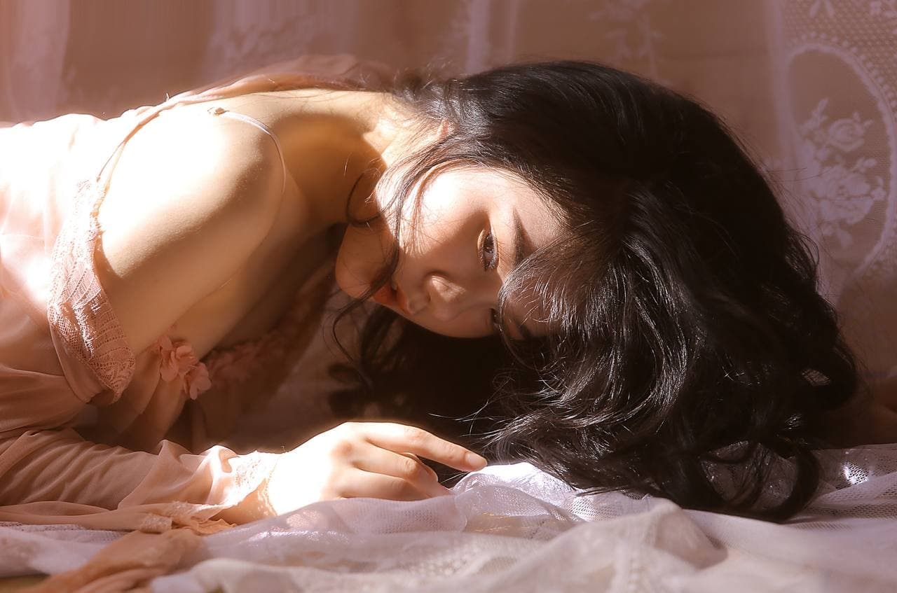 女学生倚靠在墙上,一言不发,只是紧闭著双眼,痛苦地皱著眉头。